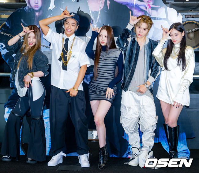 [OSEN=민경훈 기자] 23일 서울 강남구 강남대로 일상비일상의틈에서 더블랙레이블 신인 올데이 프로젝트 (ALLDAY PROJECT) 데뷔 기념 팝업 스토어 오픈 포토콜 행사가 열렸다.프로듀서 테디가 이끄는 더블랙레이블의 신인 혼성 그룹 올데이 프로젝트(ALLDAY PROJECT - 애니, 타잔, 베일리, 우찬, 영서)는 이날 정식 데뷔한다. 데뷔 전부터 신세계 정유경 회장의 장녀 애니(본명 문서윤)가 멤버로 포함돼 화제를 모으고 있다. 한편, 이들은 앞서 지난 16일 더블 타이틀곡 가운데 하나인 '페이머스'(FAMOUS) 뮤직비디오를 선공개해 유튜브 '인기 급상승 음악'과 '인기 급상승 동영상' 1위를 기록했다.올데이 프로젝트가 포토타임을 가지고 있다. 2025.06.23 /rumi@osen.co.kr |