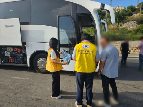 (서울=연합뉴스) 김지연 기자 = 이스라엘에 체류하던 한국 국민 44명과 미국 국적 재외동포 1명이 23일(현지시간) 정부에서 제공한 버스를 이용해 이집트에 무사히 도착했다고 외교부가 밝혔다.