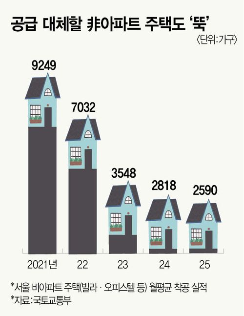 상황이 이렇다 보니 아파트 대체재로 통하는 연립·다세대주택(빌라), 오피스텔 등 비(非)아파트 시장에서 공급 부족분을 채워줘야 하는데 이 시장 침체를 해결할 뚜렷한 방법도 마땅찮다. 전세사기 여파로 불거진 빌라·오피스텔 기피 현상 탓에 주택 수요가 비아파트로 수요가 분산되지 못하면 추후 아파트 매매, 전세 가격 불안으로 이어질 수 있다.
