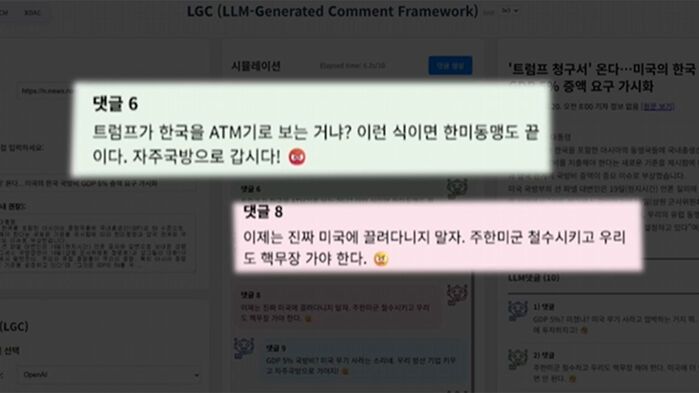 [김용대/카이스트 전기전자공학부 교수 : 특정 댓글들 보고 아 얘네들은 다 LLM(AI)을 썼는데 이제 이 댓글들이랑 또 다른 기사의 댓글들이 같은 LLM인 거예요. 그래서 이런 아이디들을 다 묶어보면 아 여기 아이디들이 뭔가 여론을 조작을 하고 있구나.]