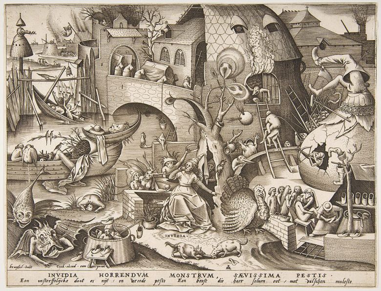 시기심은 남의 성공이나 행복에 불편함을 느껴 이를 방해하고 폄하하려는 심리다. 북유럽 르네상스의 대표 화가 피터르 브뤼헐 더 아우더가 그린 ‘시기심’. 사진 출처 미국 메트로폴리탄미술관