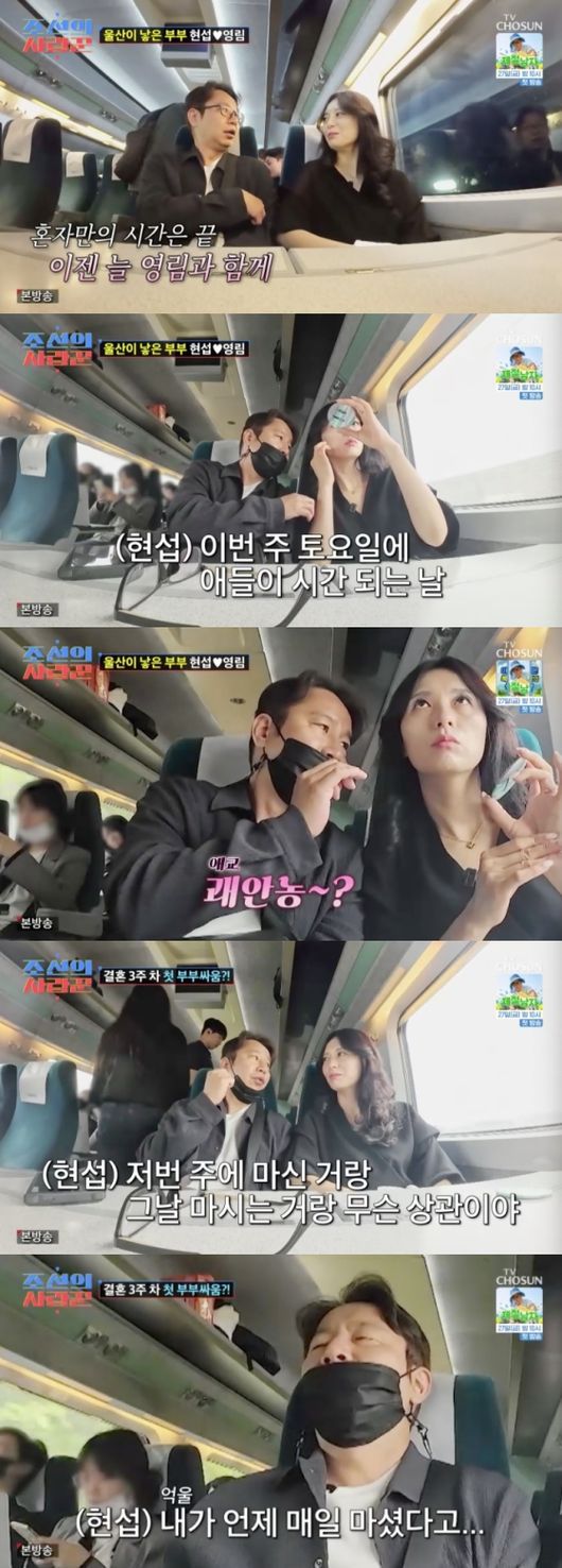 기차를 타고 서울로 향하는 두 사람. 심현섭은 애교가 가득한 목소리로 정영림에게 토요일에 술 약속이 있다며 참석해도 되는지 물었다. 정영림은 못마땅한 듯한 표정을 지으며 “지난주에도 계속 마셨잖아”라고 말했다.