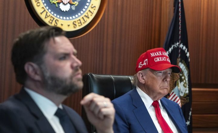 [워싱턴=AP/뉴시스] 도널드 트럼프 미국 행정부가 이란이 조만간 핵 시설 피격에 대한 보복 공격에 나설 가능성에 대비하고 있다고 외신이 보도했다. 사진은 트럼프 대통령이 지난 21일(현지 시간) 백악관 상황실에서 이란 폭격 '자정의 해머' 작전을 지켜보는 모습. 좌측에 JD 밴스 부통령이 함께 앉아 있다. 2025.06.24. *재판매 및 DB 금지 |