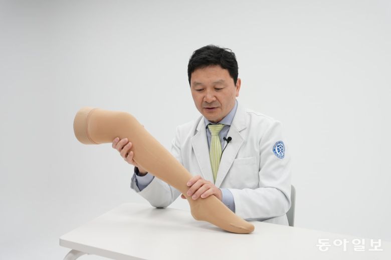 24년간 하지정맥류 치료를 해온 연세흉부외과의원 정원석 원장이 일반 압박스타킹이 아닌 의료용 압박스타킹의 중요성에 대해 이야기 하고 있다. 이진한 기자 likeday@donga.com |