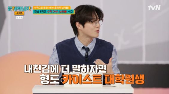 [OSEN=하수정 기자] '문제적남자 리부트' 엑소 수호가 교육자 부모님과 카이스트 대학원 출신 형을 언급했다.