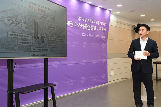 김동근 의정부시장은 지난해 7월 17일 시청에서 ‘의정부역세권 개발 마스터플랜’을 발표했다. 시는 수도권 북부의 인구밀집 및 산업ㆍ경제활동 중심지이자 교통거점인 의정부역세권을 고밀ㆍ복합개발해 콤팩트시티(기능 집약 도시)로 만들 계획이다. 사진 의정부시 |