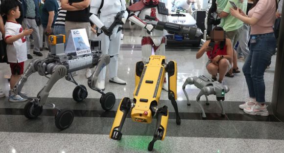 지난해 서울 강남구가 개최한 로봇플러스 페스티벌에서 방문객들이 4족 로봇의 움직임을 구경하고 있다. 강남구 제공 |