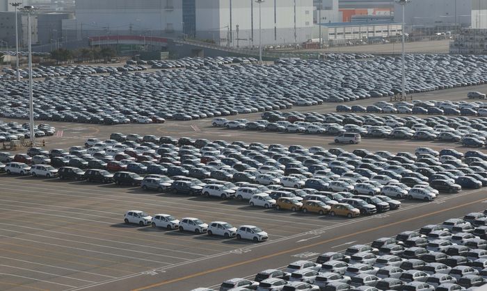 경기 평택시 평택항 기아차 전용부두에 수출 차량들이 선적되고 있다. [한주형 기자] |