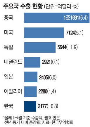 수출액 2177억弗, 0.8% 감소