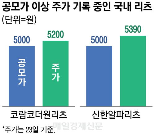 다만 해당 리츠들 가운데 현재 주가가 상장 공모가(주당 5000원)를 웃도는 곳은 코람코더원리츠와 신한알파리츠 등 두 곳 정도에 불과하다. 대부분 주당 3000~4000원대에 머무르고 있다.