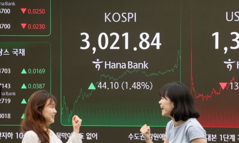 20일 오후 3시30분 코스피가 3000선을 돌파한 채 마감했다. 사진은 서울 중구 하나은행 딜링룸 화면에 코스피 종가가 떠 있는 모습. 김영원 기자 forever@hani.co.kr