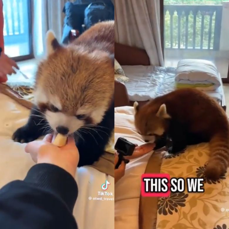 투숙객의 후기 영상이 온라인에서 논란이 되자, 호텔 측은 ”레서판다를 인근 동물원에서 임시 대여했으며 백신 접종 및 건강 관리를 하고 있다“고 해명했습니다.