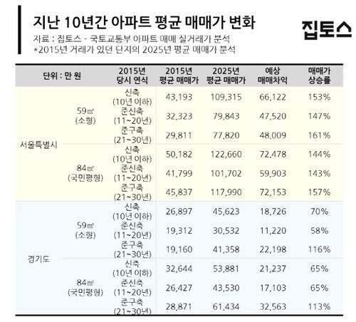 집토스 관계자는 "서울에서는 신축의 상품성이 가장 큰 부를 창출했지만 상승률 면에서는 재건축 기대감이 있는 아파트가 더 효율적 투자였다"면서 "입지 특성에 따라 투자 전략이 달라져야 한다는 점을 보여준다"고 말했다.