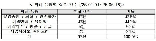 특히 피해가 집중된 주요 플랫폼은 '쉐어JS(31건)', '세이프쉐어(10건)' 등으로, 피해 이용자 다수가 1년 이용권 구매 후 1~4주 내 계정 중단 등의 피해를 입은 것으로 나타났다.