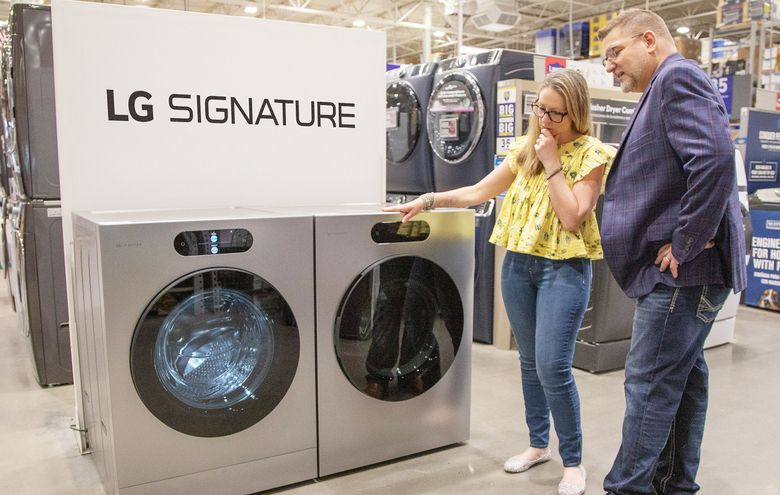 미국 로우스 매장 전시 중인 LG 시그니처 세탁기와 건조기. 사진|LG전자 |
