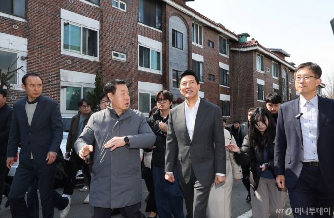 (서울=뉴스1) 박지혜 기자 = 오세훈 서울시장이 17일 서울 구로구 오류동 소규모 재건축 현장을 둘러보고 있다. 서울시는 올해 5월부터 소규모 건축물의 용적률을 한시적으로 완화하는 '규제철폐안 33호'를 적용할 방침이다. 첫 번째 적용 대상지는 서울 구로구 오류동 소규모 재건축 현장(화랑주택)이다. 이를 통해 서울시는 향후 3년간 약 1만 가구 규모의 주택을 공급할 계획이다. 2025.3.17/뉴스1 Copyright (C) 뉴스1. All rights reserved. 무단 전재 및 재배포, AI학습 이용 금지. /사진=(서울=뉴스1) 박지혜 기자 |