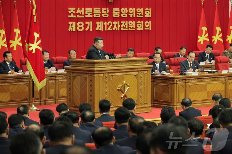 (평양 노동신문=뉴스1) = 북한 노동당 기관지 노동신문은 24일 김정은 당 총비서 주재로 "조선노동당 중앙위원회 제8기 제12차 전원회의 확대회의가 2025년 6월 21일부터 23일까지 진행됐다"라고 보도했다.. [국내에서만 사용가능. 재배포 금지. DB 금지. For Use Only in the Republic of Korea. Redistribution Prohibited] rodongphoto@news1.kr