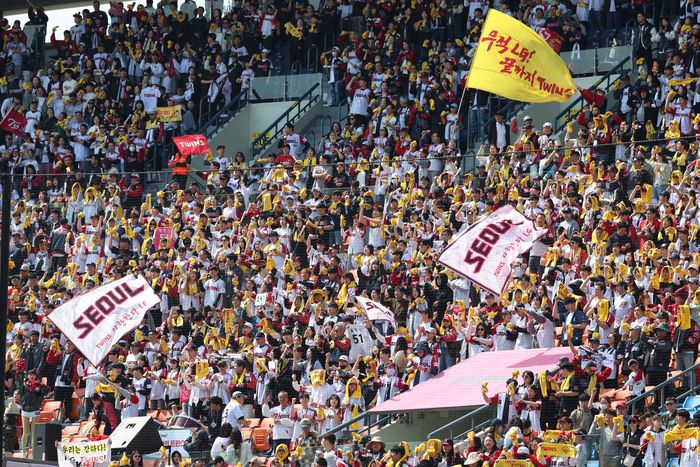 4월6일 서울 잠실구장에서 열린 2025 KBO리그 정규시즌 KIA-LG전을 찾은 LG팬들이 응원을 보내고 있다. 사진 | LG 트윈스 |