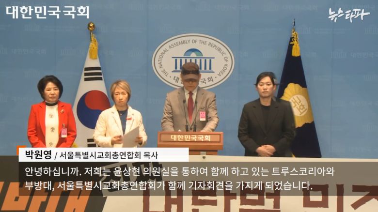 사실상 리박스쿨과 한 몸처럼 활동하는 트루스코리아는 지난 3월 12일, 국회에서 ‘탄핵 반대 진짜 내란범은 민주당’, ‘윤석열 대통령 탄핵 반대 시국선언’이라는 플래카드를 걸고 기자회견을 열었다.