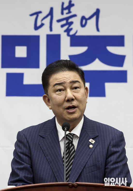 더불어민주당 김병기 대표 직무대행 겸 원내대표가 24일 서울 여의도 국회에서 열린 더불어민주당 의원총회에서 모두발언을 하고 있다.