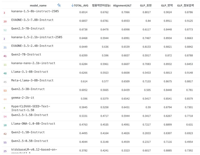 앞서 카카오는 자체 개발 언어모델 '카나나' 라인업 가운데 80억개·21억개 크기의 모델을 오픈소스로 공개했다. 카카오의 AI 모델은 매개변수 80억개 이하의 모델 가운데 0.691점을 기록하며 국내 모델 가운데 가장 높은 순위에 올랐다.