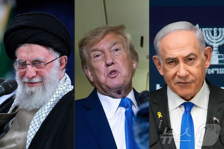아야톨라 하메네이 이란 최고지도자와 도널드 트럼프 미국 대통령, 베냐민 네타냐후 이스라엘 총리(왼쪽부터) <자료사진> ⓒ AFP=뉴스1