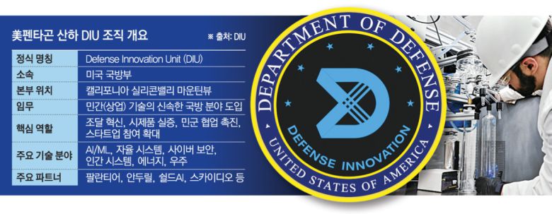 미국 국방부(펜타곤) 산하 국방혁신단(Defense Innovation Unit·DIU)은 민간 기업의 첨단 기술을 빠르게 군사 분야에 도입하기 위해 만들어진 조직이다.