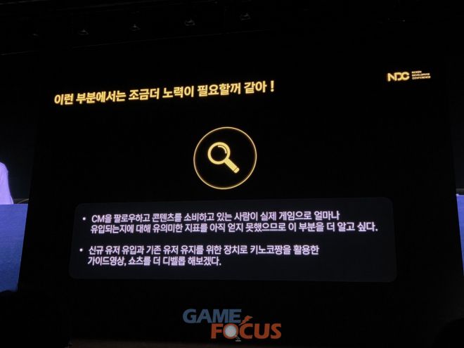 끝으로 CM을 도입하는 개발자들에게 오주희 리더는 “CM을 통해 게임 팬으로서의 확장 가능성이 있는 유저들에게 신뢰 있는 메시지를 전달하면 인게임에서도 유의미한 지표 변화 획득의 가능성은 존재한다”라며 “하지만 CM이 전달한 긍정적인 반응이 공식으로 이어지게 하기 위해서는 공식의 폭 넓은 어프로치도 필요하다”라고 조언했다.