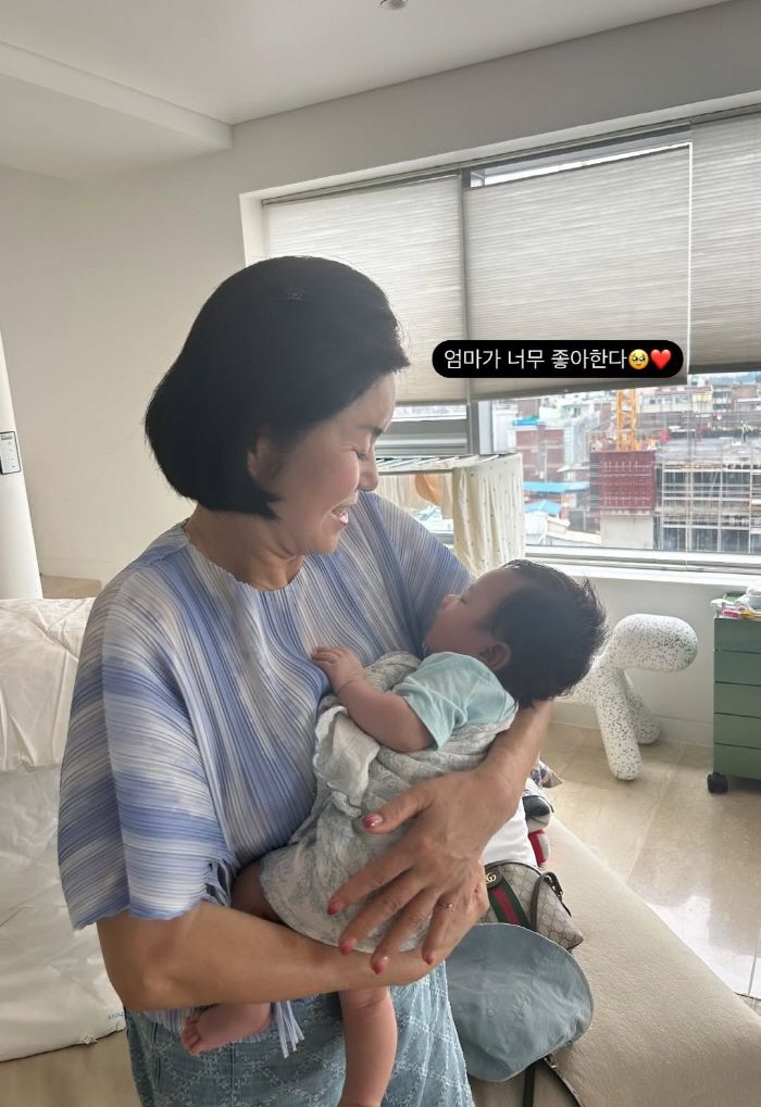 공개된 사진에는 손담비의 어머니가 손녀 해이 양을 품에 안고 환한 미소를 짓고 있는 모습이 담겨 있다.