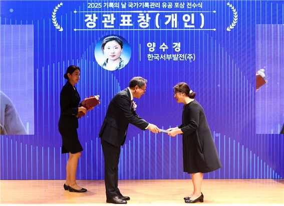서부발전은 24일 기록물관리전문요원인 양수경 사원이 국가기록관리 유공으로 개인 부문 행안부 장관 표창을 수상했다고 밝혔다.