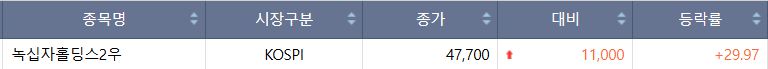 24일 코스피 시장에서 상한가를 기록한 종목은 녹십자홀딩스2우 1종목이다. 특별한 호재성 공시나 이슈는 없었던 것으로 파악된다.