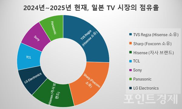 [박진우 기자] [포인트경제] 2025년, 일본의 TV 시장은 외관상 여전히 다채로운 브랜드가 경쟁하는 듯 보이지만, 실제로 '일본산 TV'는 거의 사라진 것이나 다름없다. 도시바, 샤프, 파나소닉 등 과거 일본을 대표하던 브랜드들은 이제 대부분 외국계 자본에 인수되었거나 매각을 추진 중이며, 자본과 기술, 생산을 모두 일본이 보유한 '진짜 일본 TV'는 소니(Sony) 하나뿐이라는 사실이다.