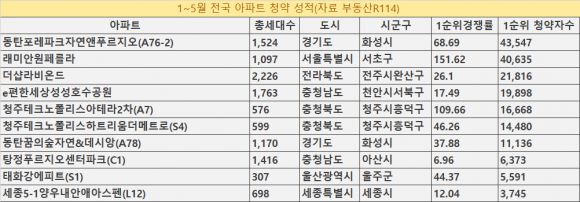 1~5월 전국 아파트 청약 현황. 부동산R114 제공 |