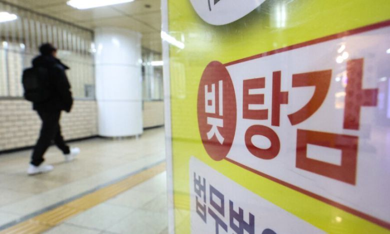 서울 서초구 교대역에 채무 상환 관련 광고가 붙어 있다. 연합뉴스 |