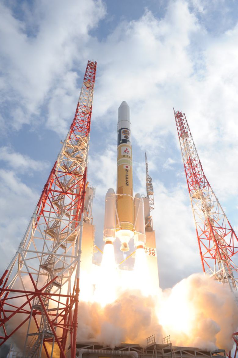 2014년 12월 일본 가고시마현 다네가시마 우주센터에서 발사체 'H2A'에 실려 발사된 하야부사2. JAXA 제공