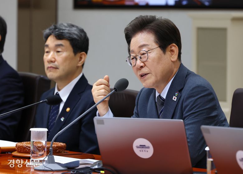 이재명 대통령이 24일 용산 대통령실 청사에서 열린 국무회의에서 발언하고 있다. 왼쪽은 이주호 총리 직무대행(부총리 겸 교육부 장관). 대통령실사진기자단 |