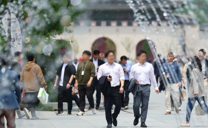 서울 광화문광장에서 직장인들이 외투를 팔에 걸고 산책을 즐기고 있다. (사진=연합뉴스)