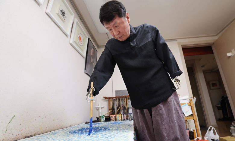 석창우 화백은 불의의 사고로 입은 신체 장애를 딛고 30여 년간 ‘의수화가’로 활동해 인간 승리의 표본으로 불린다. 1000여 장애예술인의 대표가 된 석 화백은 “그간 내 작업에만 몰두하였지만, 앞으로 동료 장애예술인들의 창작여건을 개선하고 장애 때문에 예술성이 낮게 평가받지 않는 예술적인 환경을 조성하는 데 최선을 다하겠다”고 밝혔다. 그가 자택 작업장에서 동양의 서예와 서양의 크로키를 접목한 ‘수묵크로키’ 작업을 하고 있다. 이제원 선임기자 |