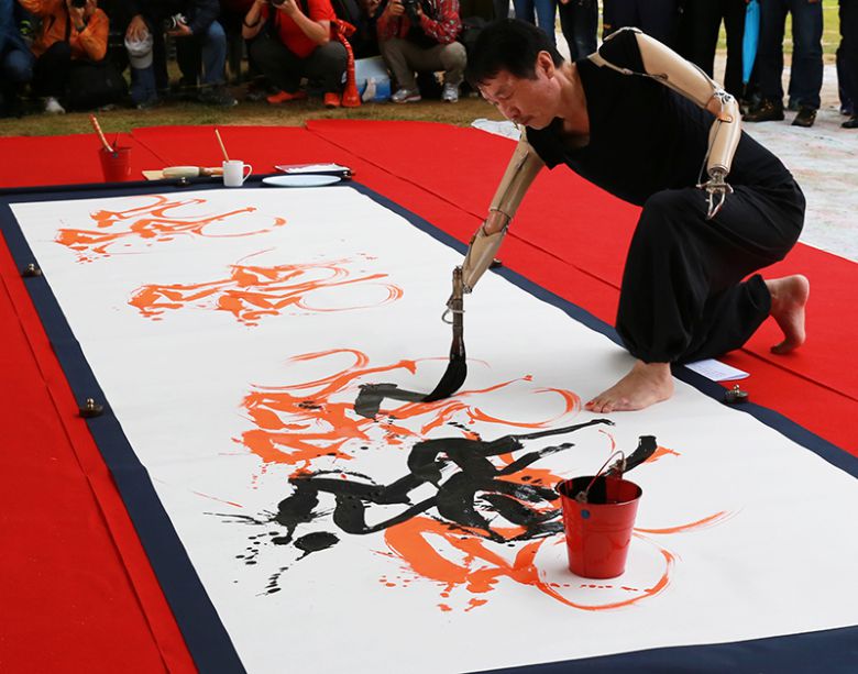 “2011년 국제올림픽위원회(IOC) 후보 도시 조사평가를 위해 방한한 16명의 위원 앞에서 선보인 시연이 반응이 좋았다. 그 결과로 감전사고로 두 팔을 잃은 지 30년이 되던 해에 하나님이 나를 패럴림픽 무대에 세우셨다. 어려움도 있었다. 수묵 크로키 퍼포먼스에 주어진 시간이 당초 8분이었으나 주최 측에서 2분 40초로 줄여 달라고 갑자기 요청해 와 당황했다. 몇 번 리허설을 해보니 도저히 시간이 맞질 않았다. 당황하지 않을 수 없었다. 한번 시연을 하고 나면 온몸의 기운이 다 빠져버릴 정도였다. 천신만고 끝에 실수 없이 시연을 펼쳤고, ‘인간승리의 감동적인 장면’으로 해외 언론의 호평을 들었다. 제 인생에 잊지 못할 벅찬 순간이었다.”