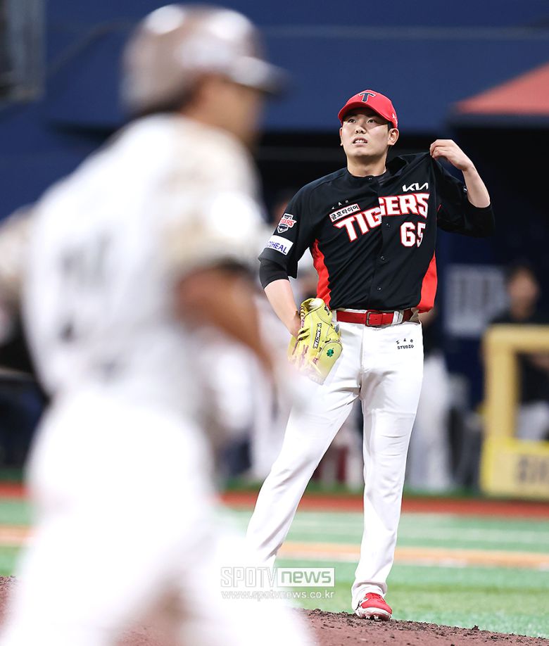 KIA 우완투수 성영탁(21)은 24일 서울 고척스카이돔에서 열린 2025 신한 SOL뱅크 KBO 리그 키움과의 경기에서 6회말 1사 1,2루 위기 상황에 구원 등판했다.