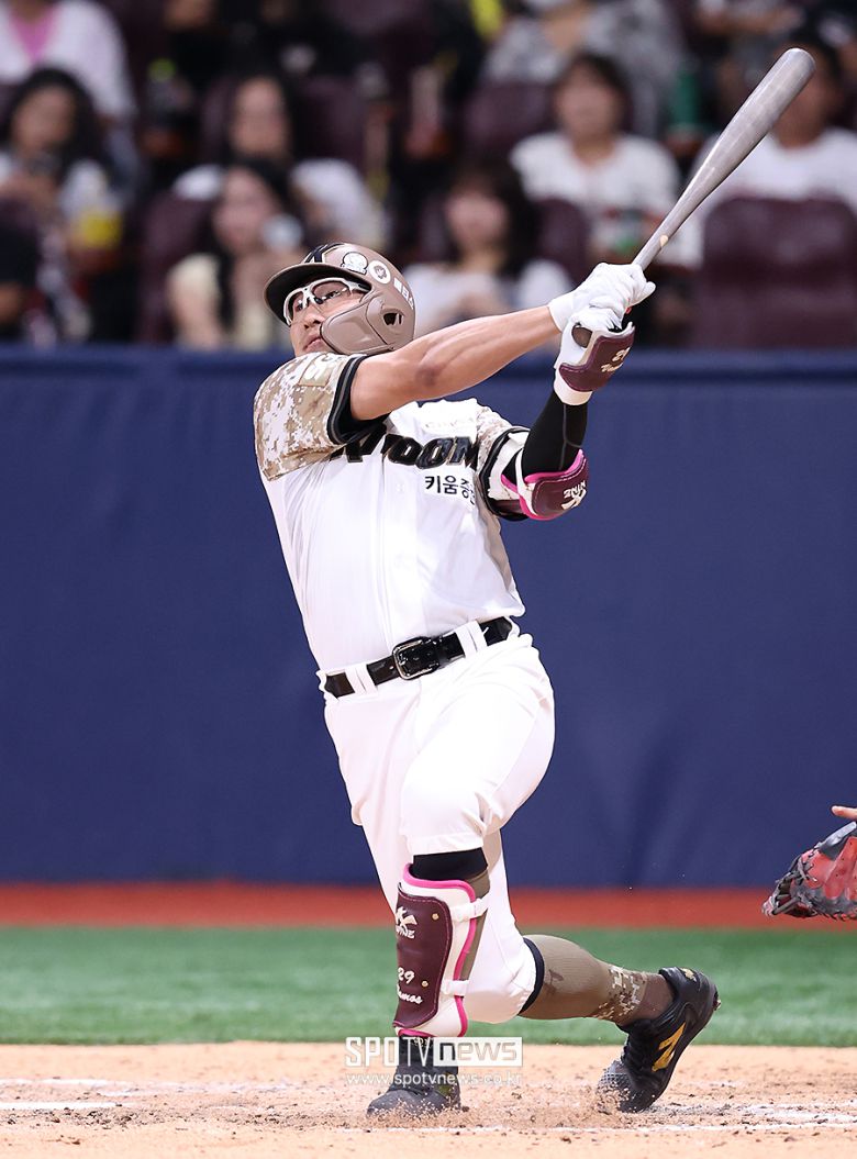 양팀이 6-6으로 맞서고 있는 상황. 성영탁은 임지열과 상대했고 볼카운트 2B 1S에서 시속 134km 커터를 던졌으나 결국 좌중월 3점홈런을 맞고 좌절했다. 키움에 6-9 리드를 허용한 것. 비거리는 125m가 측정됐다.