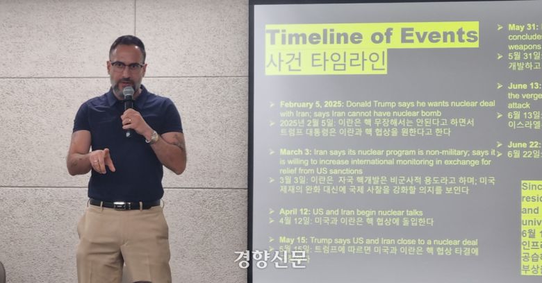 사파리 교수는 “한국 정부는 IAEA의 이사국으로서, 이스라엘 핵 개발 프로그램에 대한 국제적 사찰을 요구할 수 있다”며 “한국 정부가 이란에 대한 공격을 멈추는 데 더 적극적인 역할을 하게 촉구해달라”고 말했다.