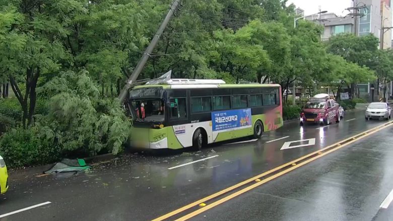 어제(24일) 오후 2시 반쯤 전북 전주시 효자동의 한 도로에서 시내버스가 전신주를 들이받았습니다.