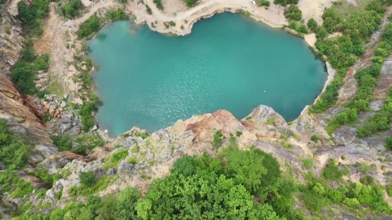 과거 채석장으로 쓰다 폐쇄된 산에 물이 차오르며 만들어낸 풍경입니다.