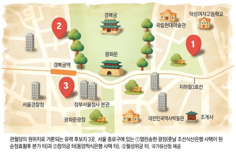 향후 과제는 관월당의 원위치를 찾는 것이다. 서울 종로구 ‘열린송현 녹지광장’이 된 순정효황후 본가 터(조선식산은행 사택 터)가 유력하나 추가 연구가 필요하다. 이 교수는 “일본에 남아 있는 여러 기록을 보면 ‘조선 왕실과 관련됐다’ ‘도로 확장 사업으로 헐렸다’ 등이 확인된다”며 “이런 조건들을 전부 만족시키는 장소가 현 송현동 부지”라고 했다. 이 밖에 종로구 통의동 일대 창의궁 터(동양척식은행 사택 터)나 과거 월궁이라 불렸던 월성위궁 터 등도 후보지로 거론된다.