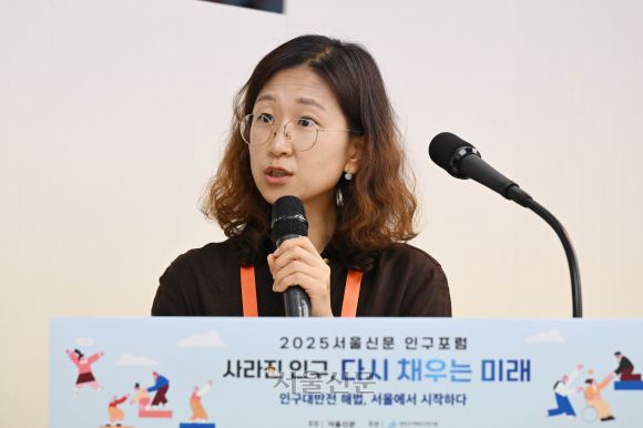 24일 서울 중구 한국프레스센터에서 열린 2025 서울신문 인구포럼에서 홍영진 한화손해보험 펨테크운영지원파트장이 주제발표를 하고 있다. 홍윤기 기자