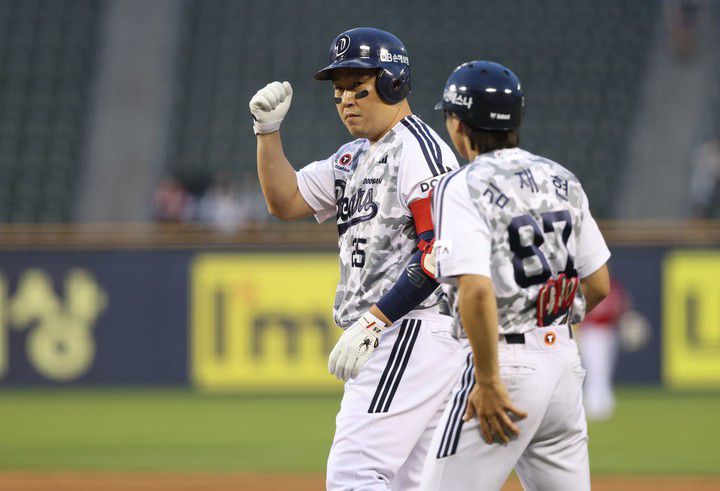 이어진 무사 만루에서 양의지가 1타점 중전 적시타를 쳐냈고, 이유찬의 3루 땅볼 때 3루 주자 오명진이 홈을 밟으면서 3-0으로 달아났다.