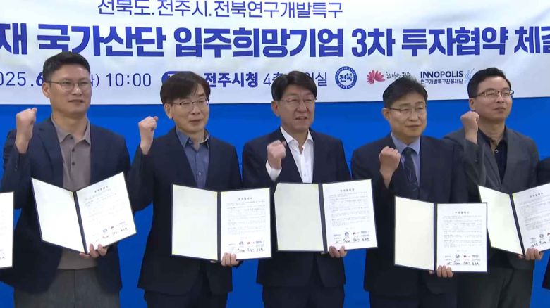 전주시는 어제(24일) 탄소국가산단 입주를 희망하는 9개 기업과 투자협약을 맺었다고 밝혔습니다.