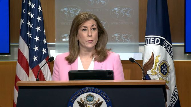 태미 브루스 미 국무부 대변인(사진=유튜브 중계화면 캡처) |