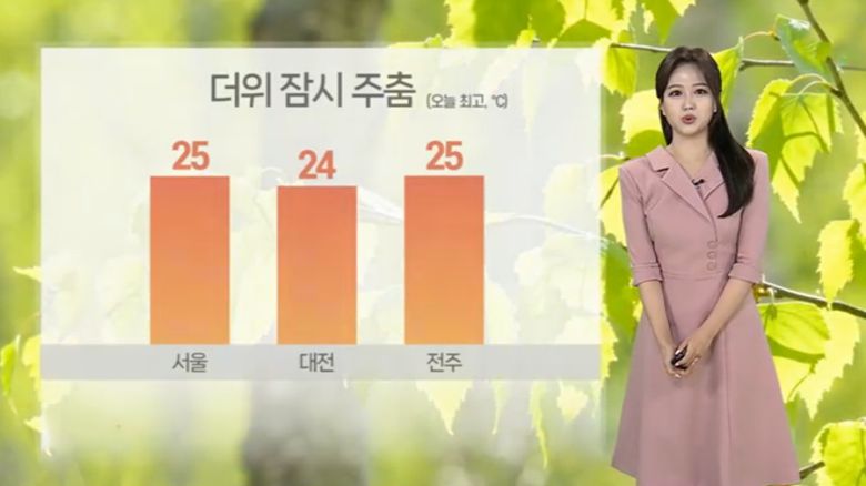 한낮에 서울 25도, 대전 24도, 광주는 26도 선에 그치겠습니다.